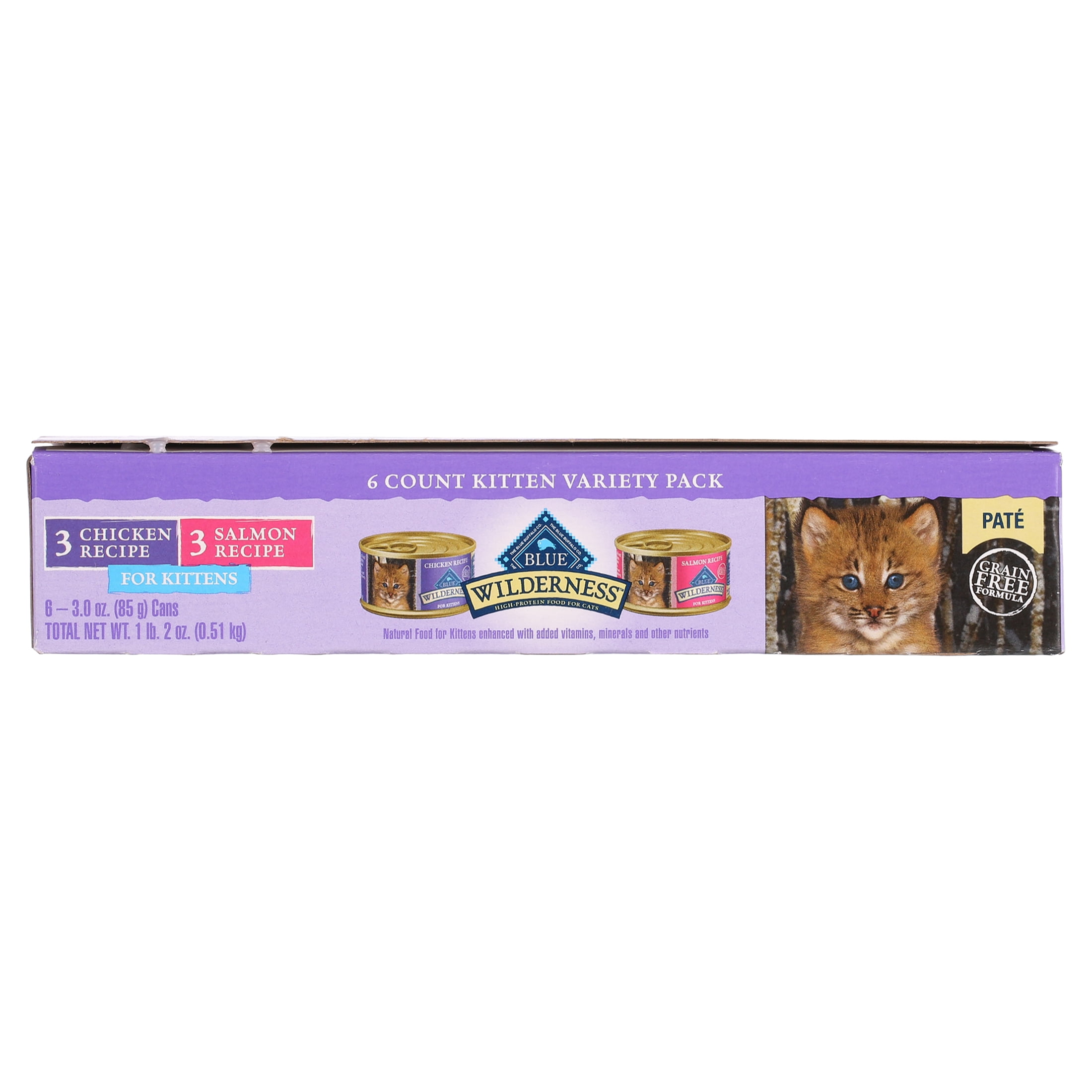 Blue Buffalo Wilderness High Protein Chicken Salmon Pate Wet Cat Food Variety Pack For Kittens Grain Free 3 Oz Cans 6 Pack Walmart Com
